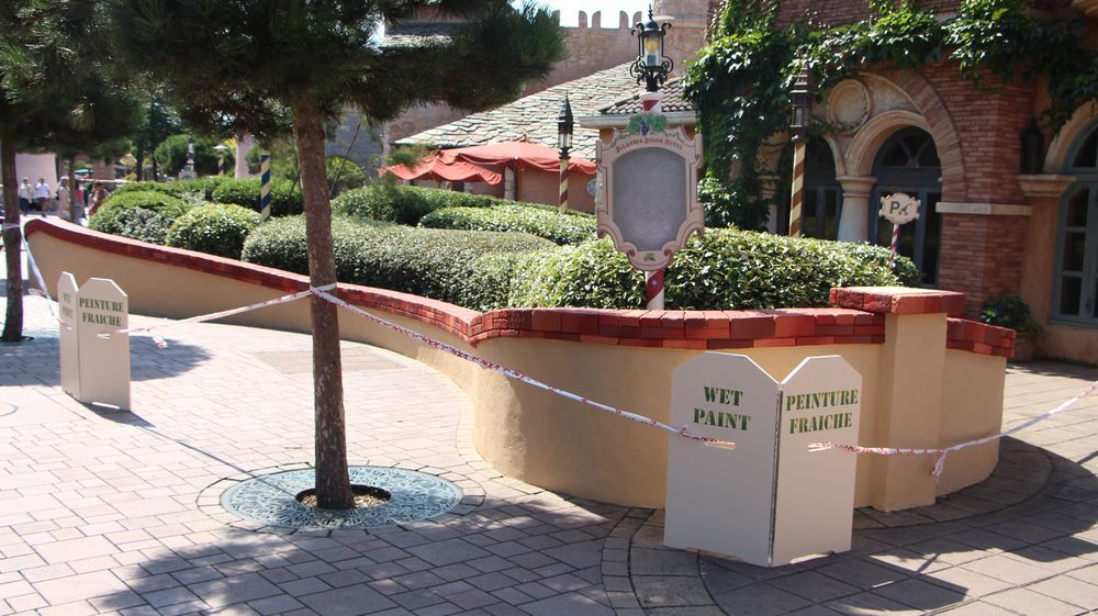 A Fantasyland near the restaurant Bella Note and Fantasia Gelati a painting refresh of the little wall was conducted, the colors are now more vibrant.