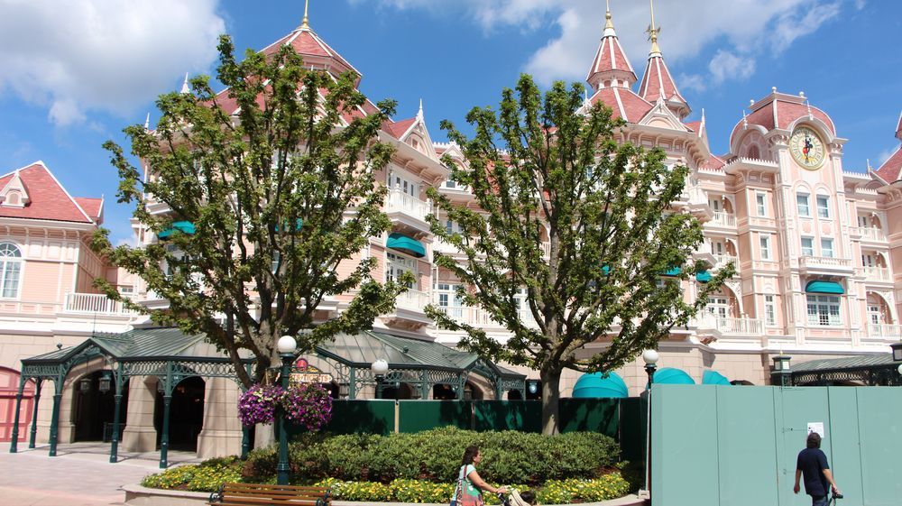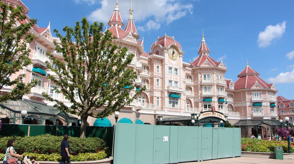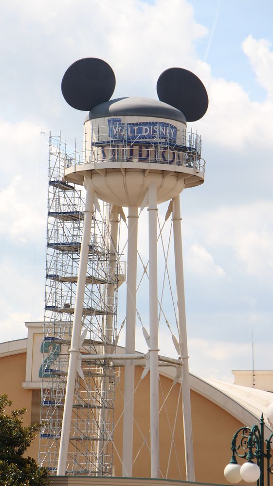 DLPWelcome webmaster. We"ll move in a few seconds to the Disneyland Park but first let's have a look to the works on the WDS Earfell Tower, known here as the "chateau d'oreilles". Works should end in September or October and they are supposed to paint at the top new visuals with eventually new colors.