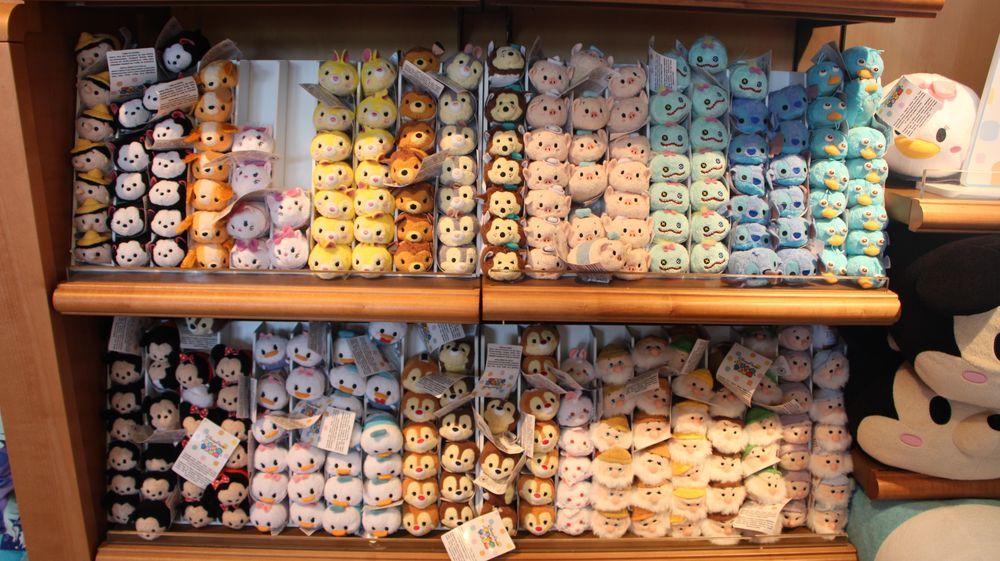 At Disney Village in the World of Disney store new plushs animals are totally "kawaii", arriving straight from Disney Store Japan. Named "TSUM TSUM" these little round balls in the Manga spirit intend to be all stacked in a pyramid and have them hold together...