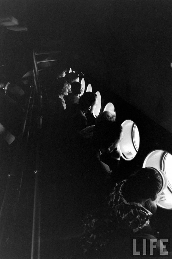 And now, here are the pictures which i think are truly unique. Walt and the Nixon Family did of course the submarine ride and, although we've seen before pictures of Walt outside the submarine for the attraction grand opening, i may be wrong but i think this is the very first time that we can see pictures of Walt INSIDE the submarine and enjoying the ride with others guests. As i considered these pictures exceptionnals i've put the whole series with pictures of the ride scenes shot the same day by LIFE photographers through the sub windows.