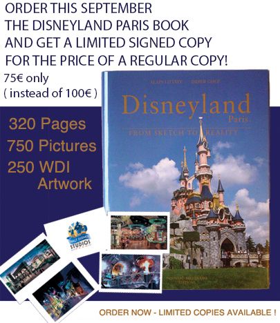 Order this September the Disneyland Paris, From Sketch to Reality book and get a SIGNED copy at the same price than the regular one! 75€ only ( + 15€ shipping worldwide ) ! This special offer is for the English or French edition! The book is the perfect gift for Disney parks fan! All orders are shipped in the next 48 hours!
