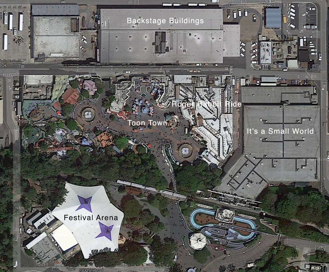 I just wanted to let you know that in the image you provided you labeled the white tent as being the Festival Arena, when it is actually the Fantasyland Theater.