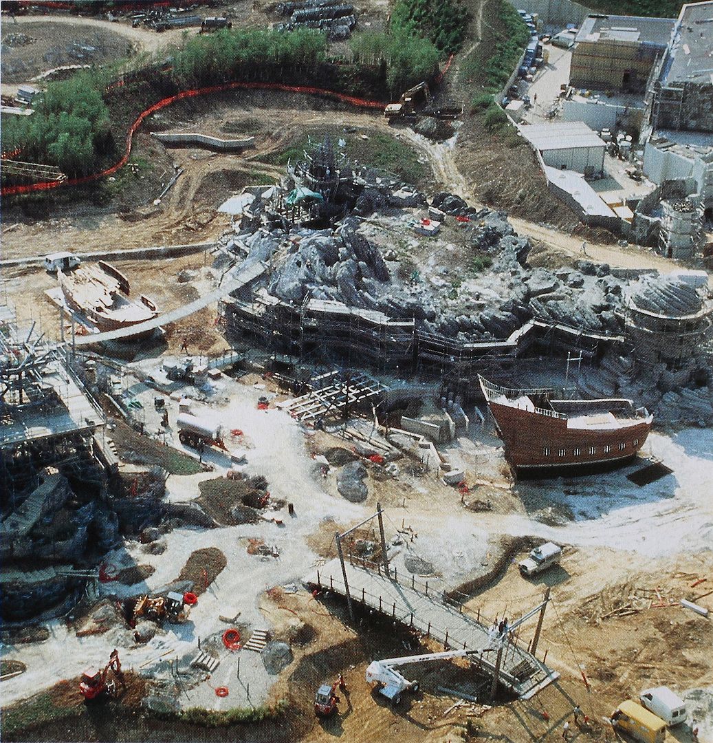 A great aerial picture showing the construction of Adventureland Adventure Isle.