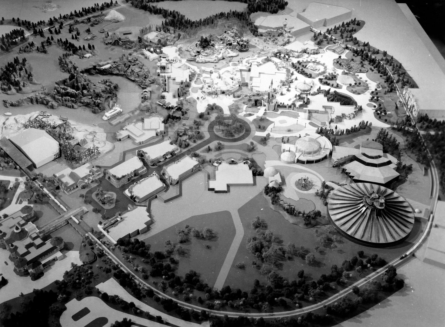A picture of DLP WDI model in its final design; Note how Autopia is not include in the model, neither Star Tours and the Captain EO Theater.