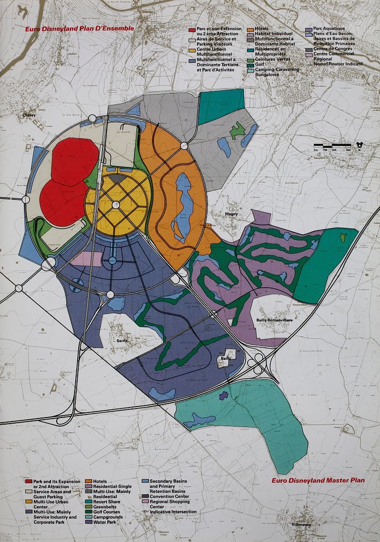 When you've finished the design you need a master plan too before starting to build a theme park and this one below will show you how it was envisioned back in 1989, including the areas for future plans as they were envisioned at that time. Click on it to see it in big size.
