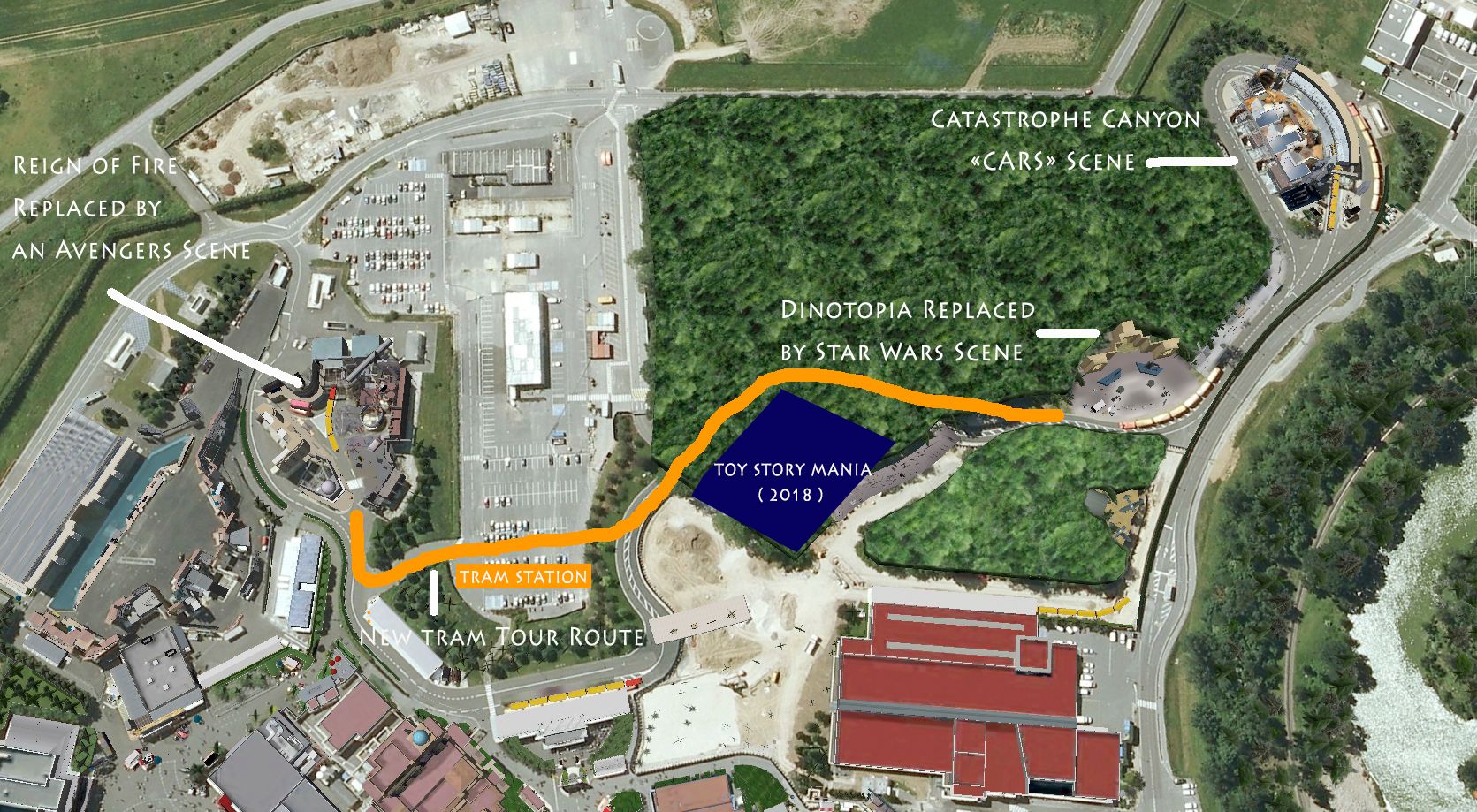 Here is a picture ( click to enlarge ) showing too the future new route of the Tram Tour and Toy Story Mania, thanks to the indications from ED92.