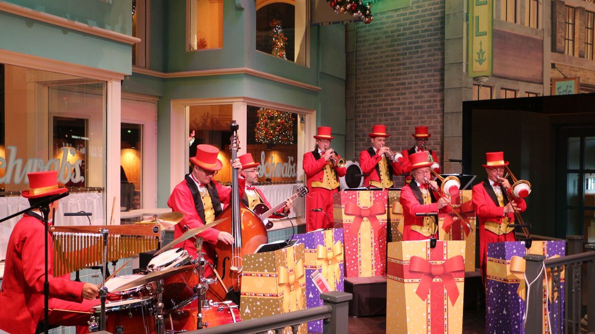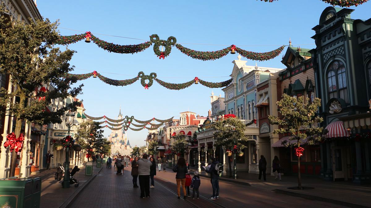 Christmas decoration are present all along Main Street as well as on Central Plaza.