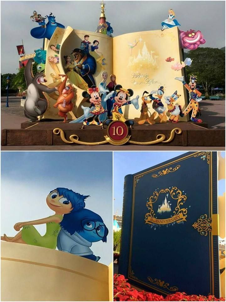 As you know HKDL is now in its 10th Anniversary celebration and HKDL 10th Ann surprises will start to open soon. At the entrance guests can see this big "book" with Mickey and friends - pictures above and below - probably here to remind to the park visitors that tomorrow is starting the new show "Mickey and the Wondrous Book" which had this week-end its media preview event.