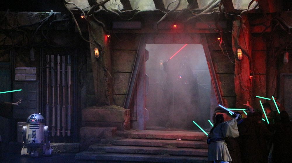 While we are in Discoveryland we'll have a look at the Jedi Training Academy which started recently, to the joy of all the young padawans facing Darth Vader and Stormtroopers. The decor built inside Videopolis is quite impressive but i still think the room is too big for a show which is more an happening than a real sophisticated show. But children love it, which is the most important.