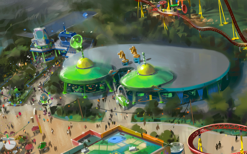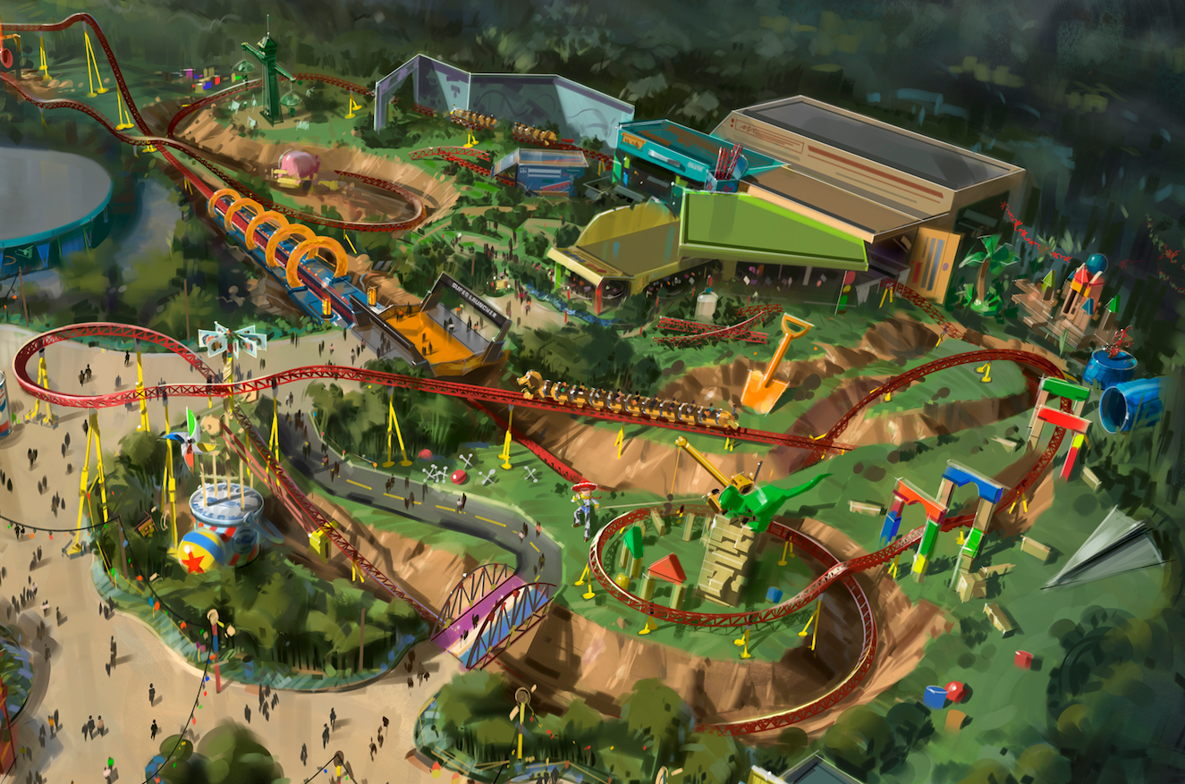 Guests will think they've been shrunk to the size of Woody and Buzz as they are surrounded by oversized toys that Andy has assembled using his vivid imagination. Using toys like building blocks, plastic buckets and shovels, and game board pieces, Andy has designed the perfect setting for this land, which will include two new attractions for any Disney park and one expanded favorite.