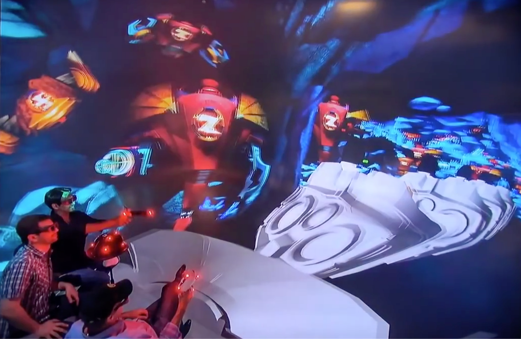 We'll start by the first ride that SDL guets will see when they will enter the land, and it's the Jet Pack ride! Below, SDL Imagineers testing the ride in WDI "virtual room".