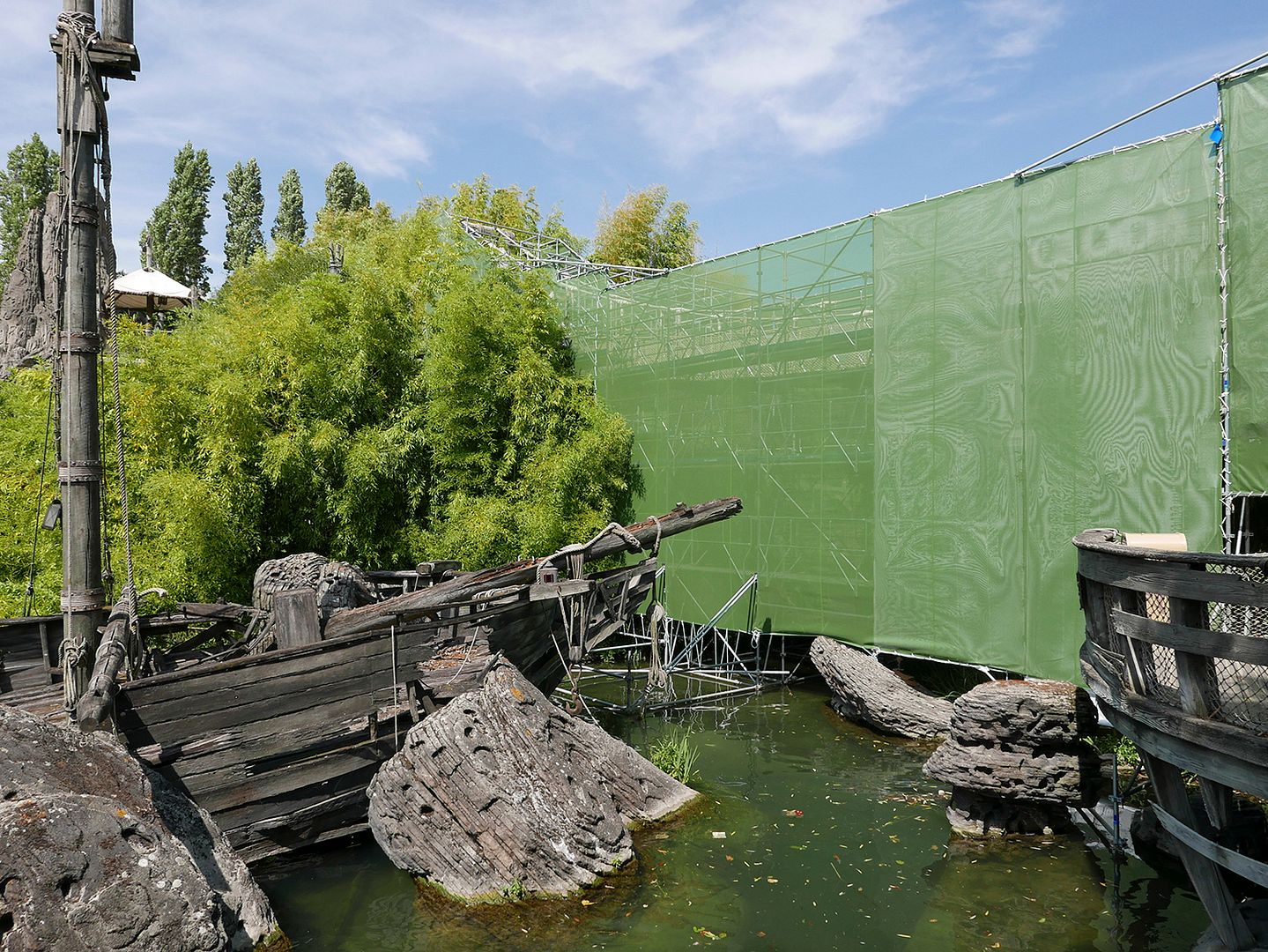 At Frontierland, the sign at the entrance of the fort was removed and you can see they've installed some metal tubes - instead of wood. I have to say i really don't like these a lot. I hope they've themed all this by now and that the sign is back.