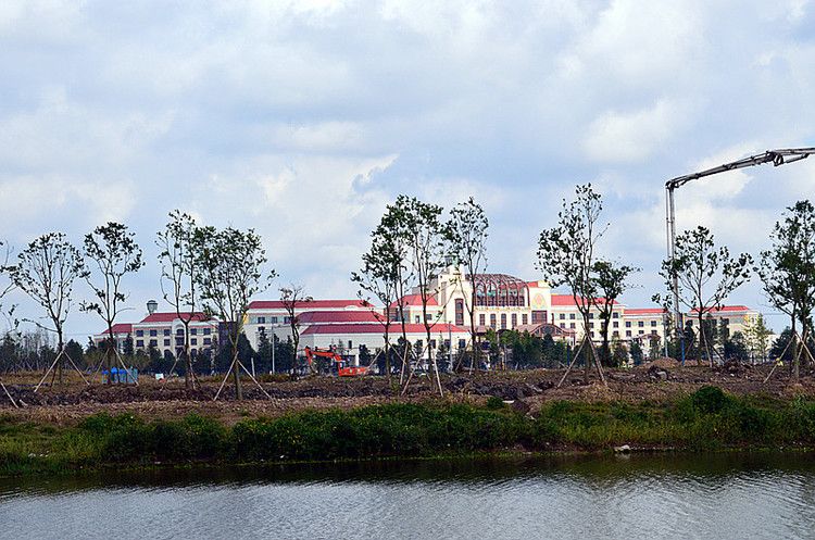 Now, i have a "one more thing" for you. You've seen two days ago the renderings for the Shanghai Village project, a huge art-deco style mall built at the other end of Shanghai Disneyland lake. Nice digital renderings and some of you may wonder when it will be built, considering the delay they already have on the park and resort. Well, it IS built already!!! And we've got the proof with the pics below!