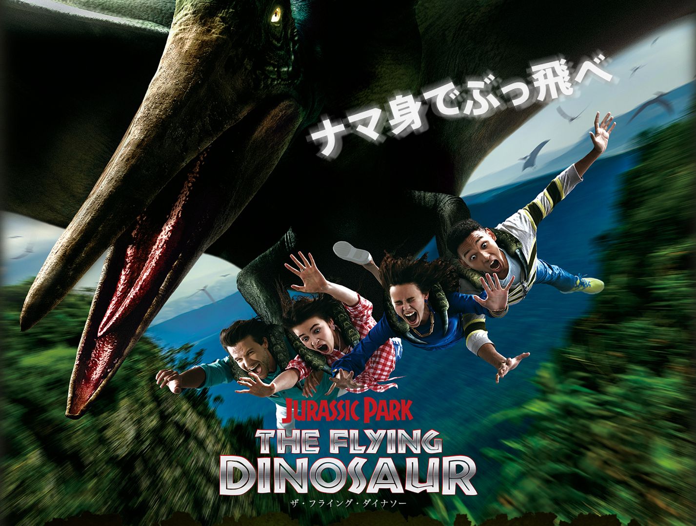 It's official! Universal Studios Japan revealed today the name of the major E-Ticket ride which will open next year for USJ 15th Anniversary. Announced a few months ago as "the greatest dinosaur ride in the world" the new ride will be a "flying coaster" in the Jurassic Park land and is titled "The Flying Dinosaur". Universal announces it as the highest flying coaster in the world. As you can see on the picture above guests will be suspended under a Pteranodon and here is the synopsis / storyline of the ride:
