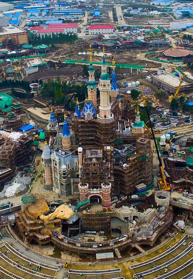 Here is a great new Shanghaî Disneyland picture to start the week! And this one is the latest picture of SDL Enchanted Storybook Castle. As you can see scaffoldings are down almost everywhere except in the center. I just hope that they'll paint the lower part left and right because i don't really like this grey color...