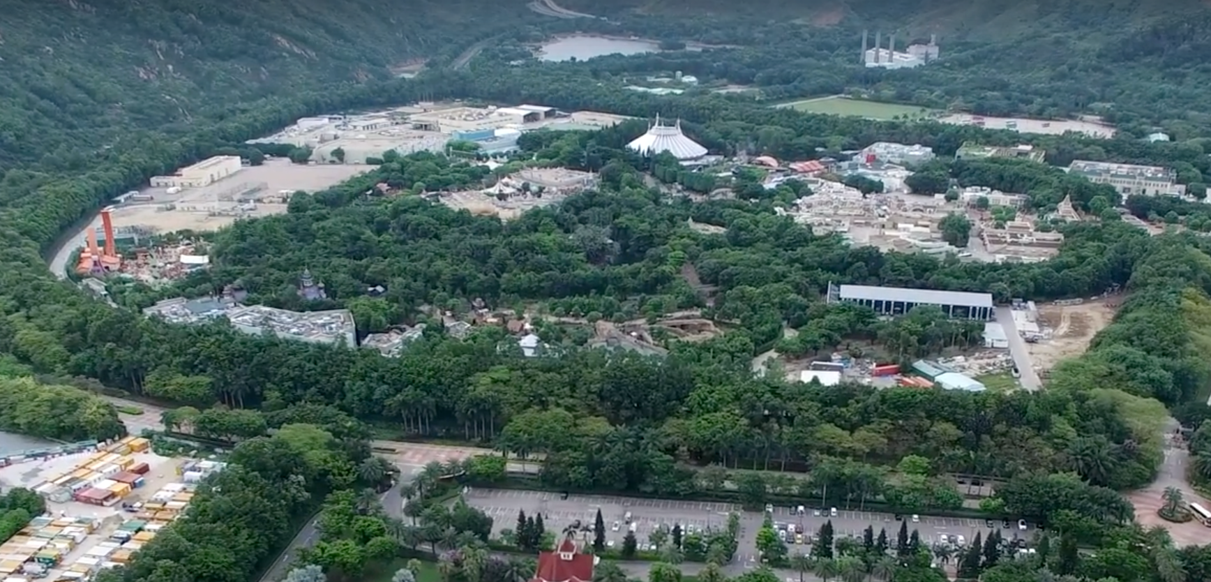 We'll start the week with a Hong Kong Disneyland update thanks to fantastic aerial shots from a 4K drone video filming from over Discovery Bay. You won't see close shots of the park in it but great views of the new Explorers Lodge Hotel currently in construction and scheduled to open next year.