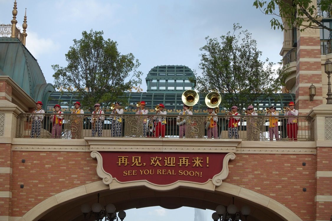 The Mickey Avenue band plays either on SDL "equivalent of Town Square or up over the entrance arch.