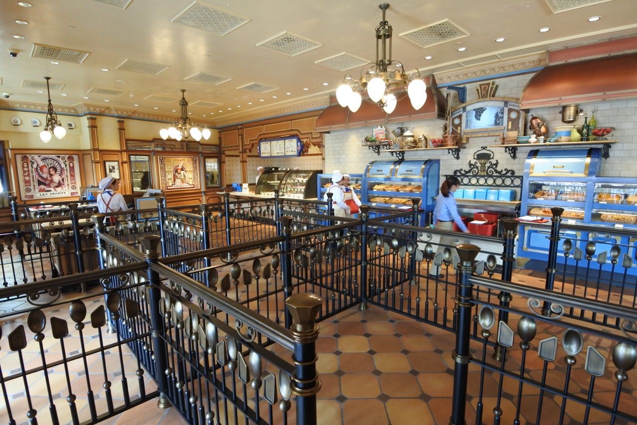 Rémy’s Patisserie offer a variety of breads, pastries and muffins, along with fresh desserts from the restaurant’s kitchen. Wooden shutters, flower boxes, sidewalk seating and French café-inspired graphics distinguish the exterior of the shop. The tiny scaffolds and ladders that line the wall are reminders that Rémy the rat, who loves to cook, is preparing something special in the kitchen.