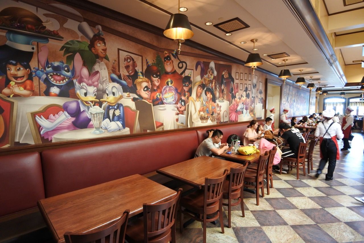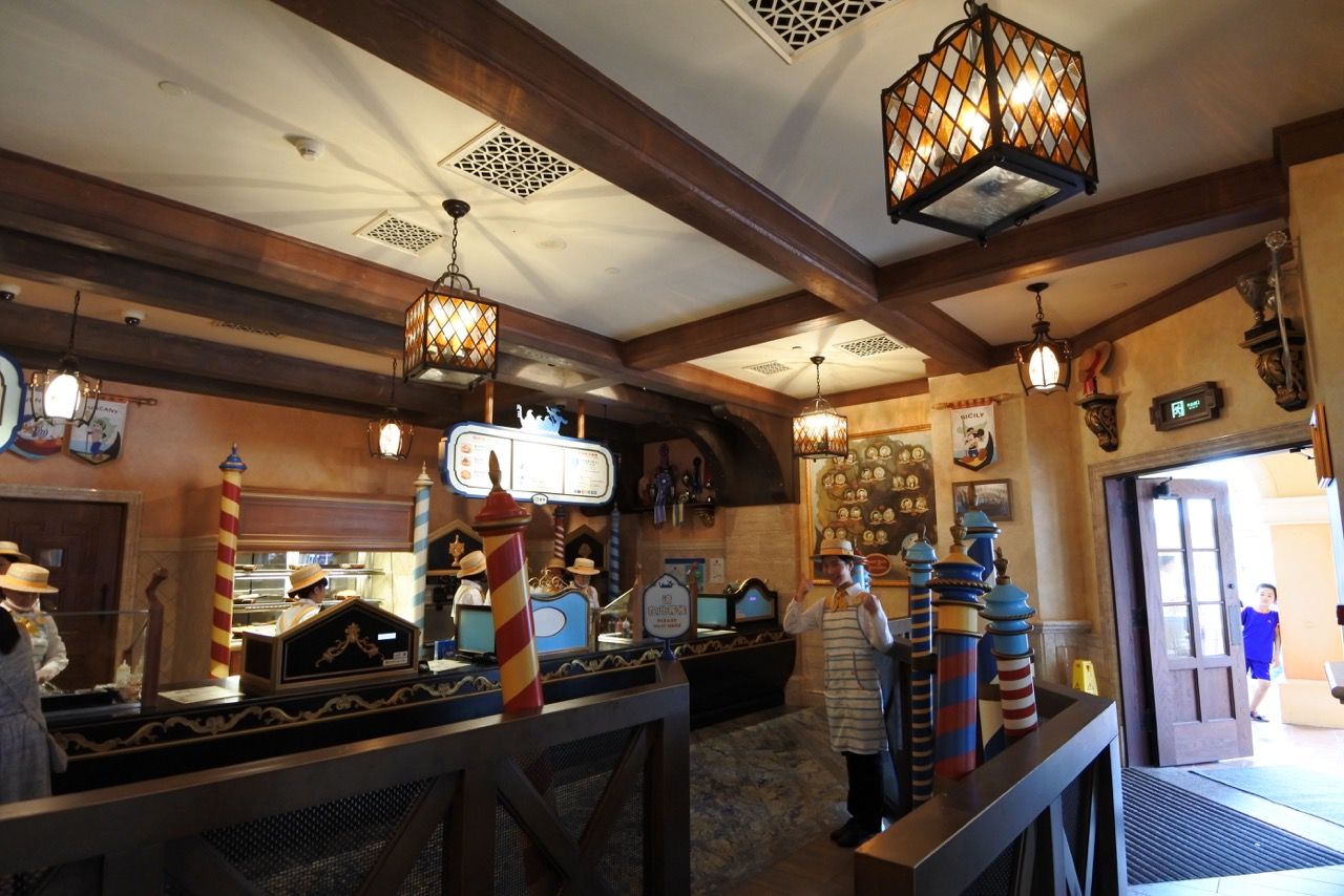 Mickey & Pals Market Café, is the BIG counter- service restaurant of Mickey Avenue, offering localized Chinese and international menus plus views of the nearby gardens, Fantasia Carousel and Enchanted Storybook Castle. Guests can gather here with family and friends, choosing a table in one of four themed dining rooms: Mickey’s Galley, Tony’s (from Lady and the Tramp), Daisy’s Cafe and the Three Caballeros.