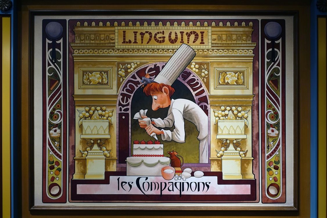 Right in front of it is Remy's Patisserie, a food store in tribute to Ratatouille little hero with nice murals for each characters of the animated movie, designed "art nouveau style".
