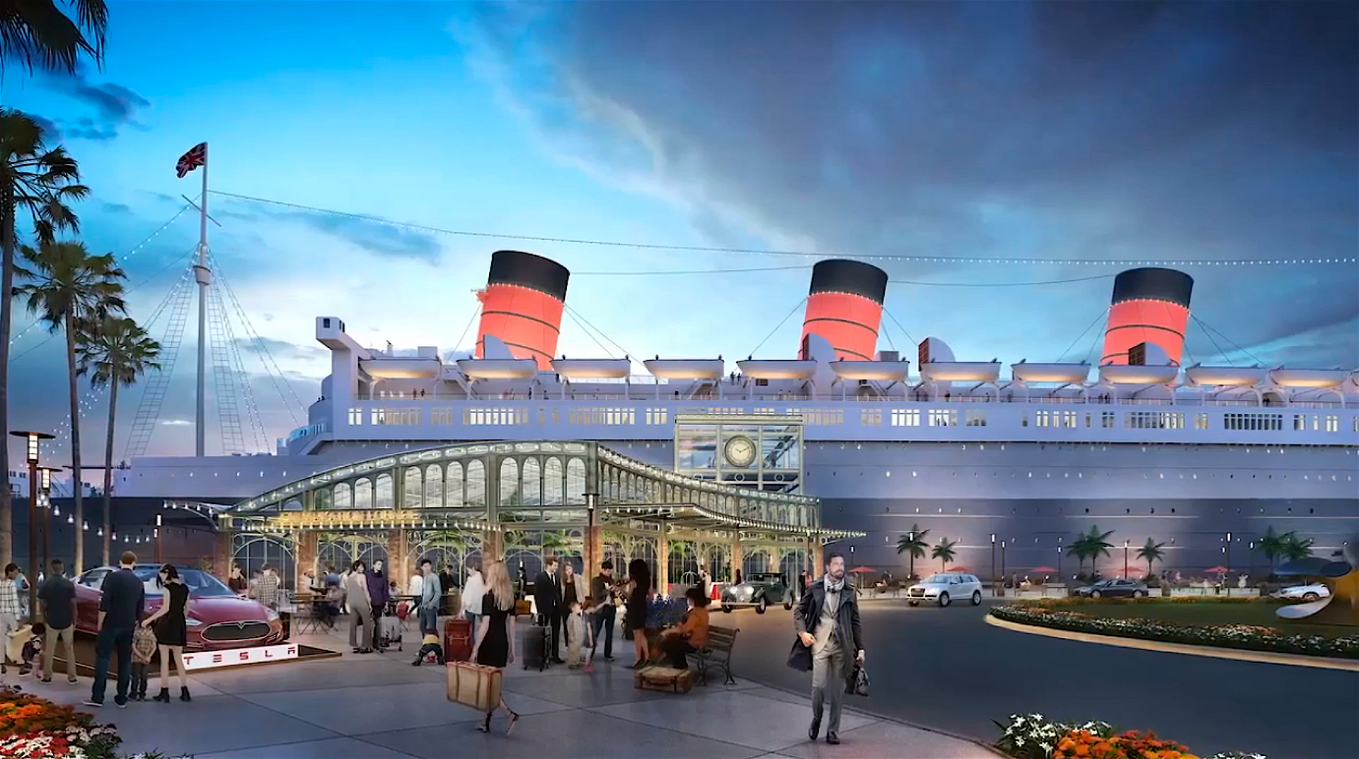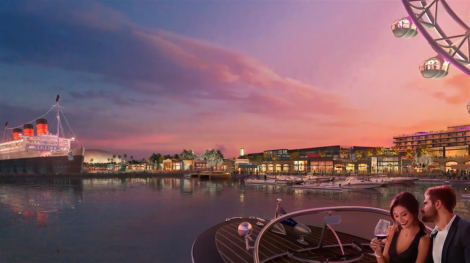 Los Angeles-based real estate investment and development firm Urban Commons today revealed the project of a $250 million, all-inclusive entertainment destination coming to life on the 65 acres of waterfront land surrounding the iconic Queen Mary ship docked in Long Beach, California. Set along the Long Beach bay front, “Queen Mary Island” will pay homage to the Golden Age of the luxury liner while bringing to life a curated collection of music, entertainment, dining, retail and adventure offerings that take full advantage of the coastal setting. Queen Mary Island will be designed as a self-contained destination with landscapes, amenities and recreational experiences to provide something for everyone.