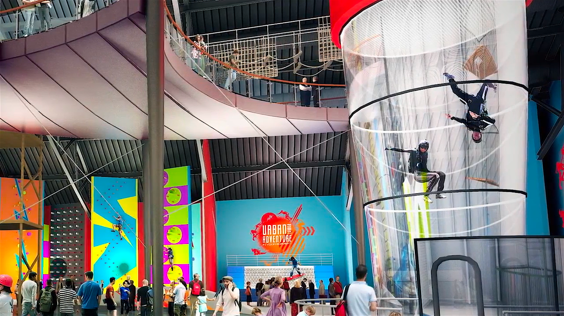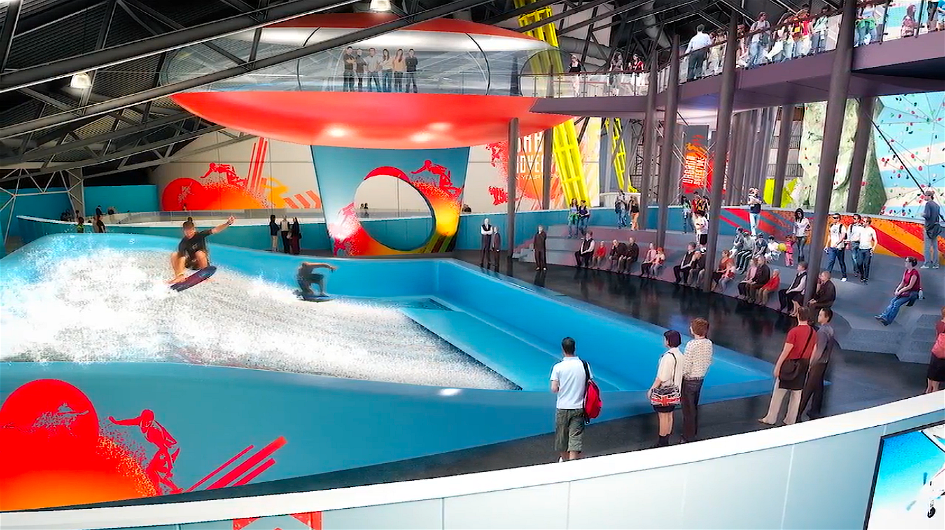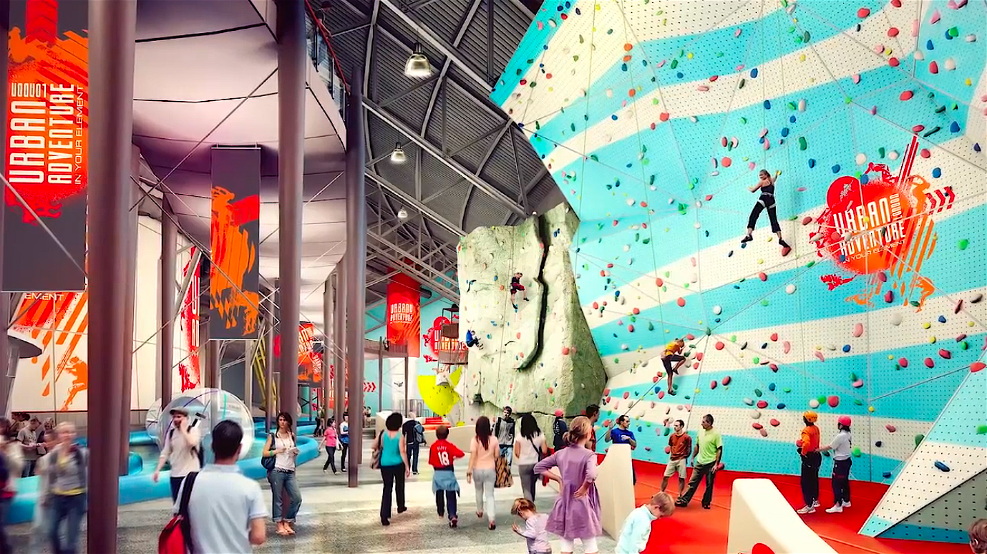 Debuting for the first time in North America, Urban Commons is collaborating with London-based Urban Legacies to bring to life Urban Adventure, a multi-activity concept boasting wildly popular and exhilarating experiences under one roof in a 150,000-square-foot facility on Queen Mary Island. Visitors will delight in approximately 20 interactive and experiential activities ranging from California’s first indoor ice climbing wall to surfing, canyoning, skydiving, zip lining, a trampoline park and much more.