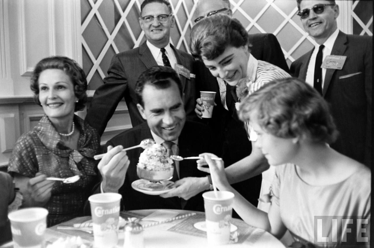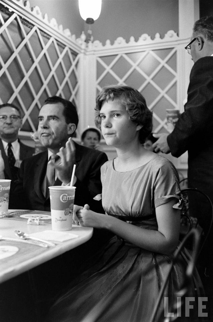 After the parade, Nixon and family went to enjoy a drink and ice cream at what seems to me to be Disneyland Plaza Inn...