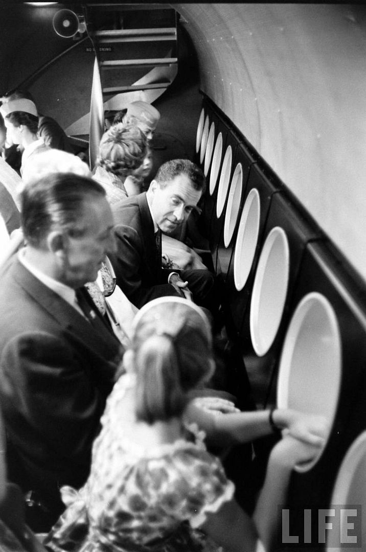 And now, here are the pictures which i think are truly unique. Walt and the Nixon Family did of course the submarine ride and, although we've seen before pictures of Walt outside the submarine for the attraction grand opening, i may be wrong but i think this is the very first time that we can see pictures of Walt INSIDE the submarine and enjoying the ride with others guests. As i considered these pictures exceptionnals i've put the whole series with pictures of the ride scenes shot the same day by LIFE photographers through the sub windows.