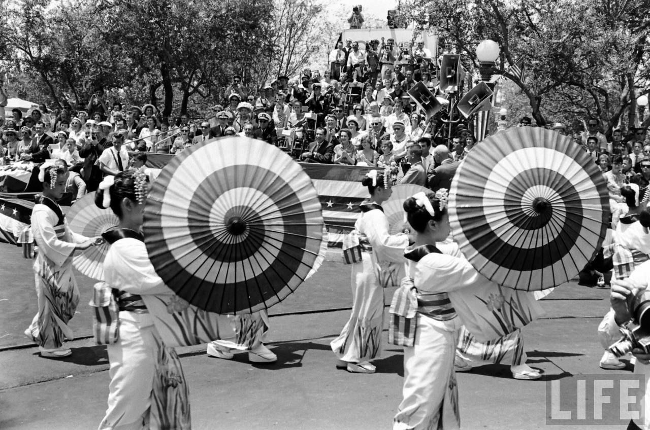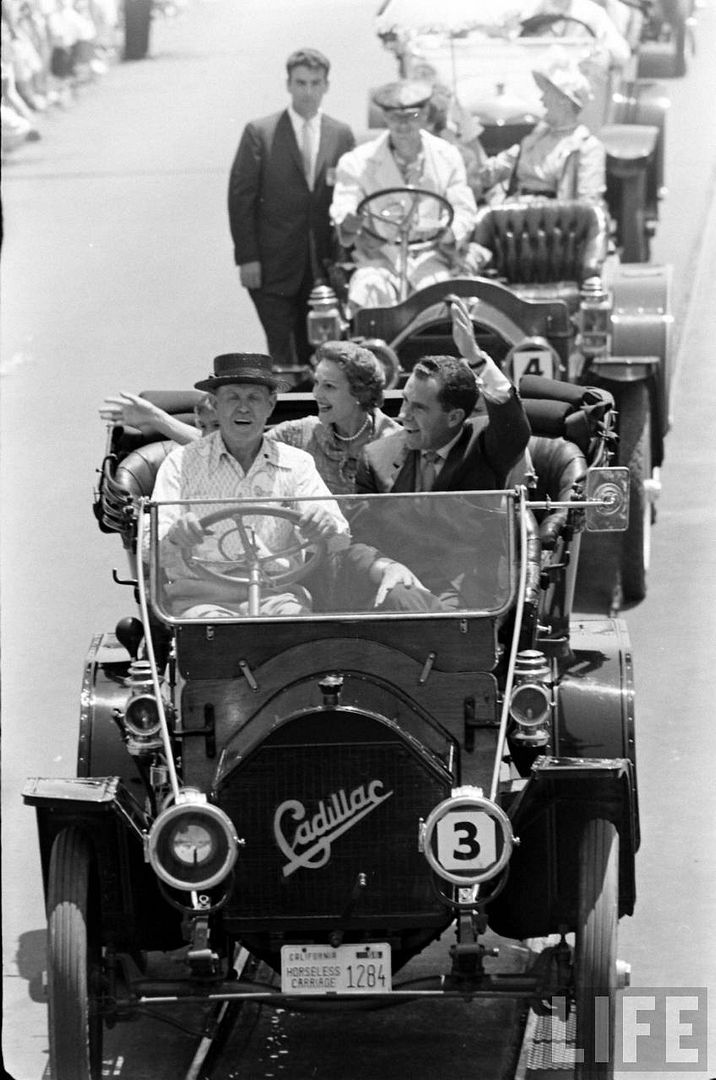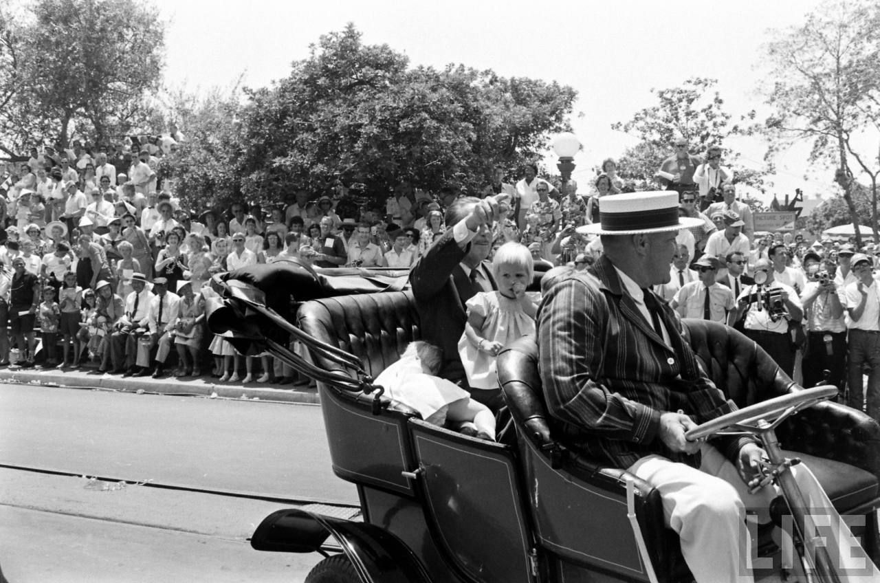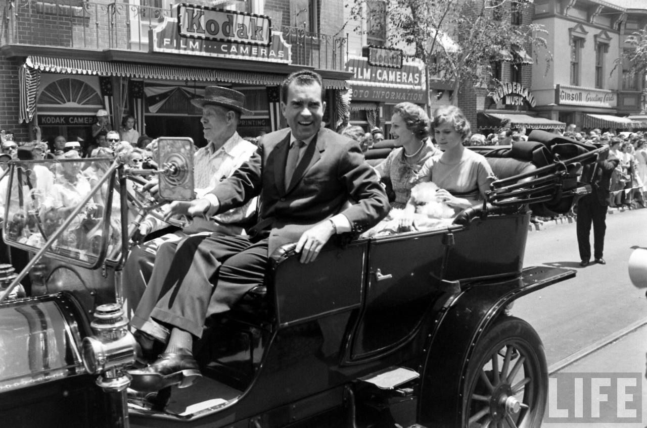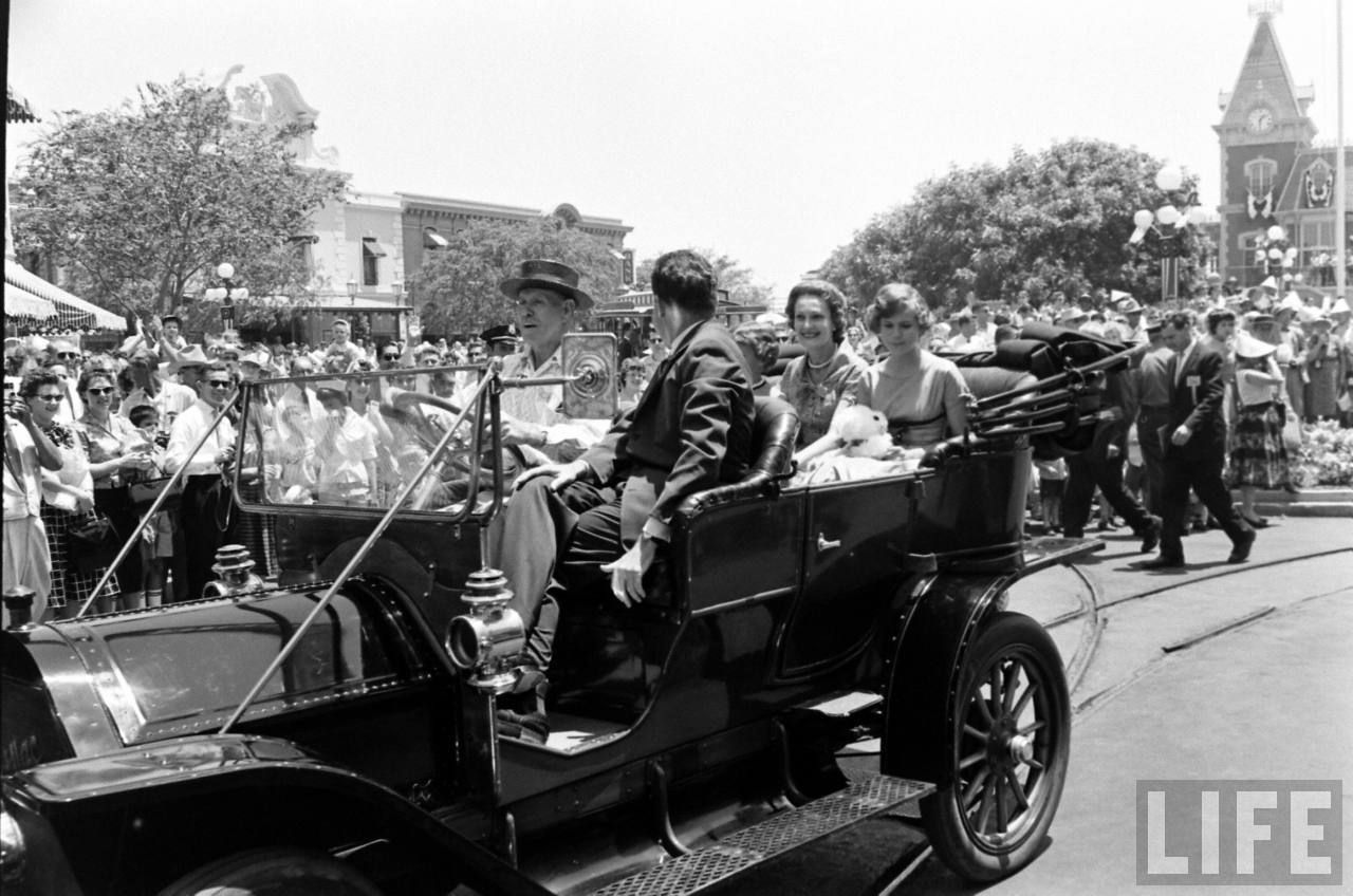 All-right, everyone is in place, after a little talk between Nixon and Walt, the 1959 Disneyland event parade can start!