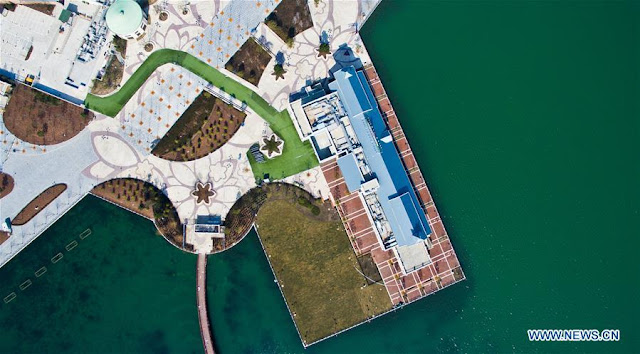 This last shot shows the entrance, not of the park but of the resort or the "Shanghaî tourism zone" in Pudong. Painting is done, flowers and trees are in place and await SDL visitors!