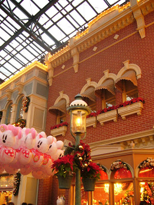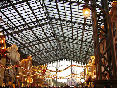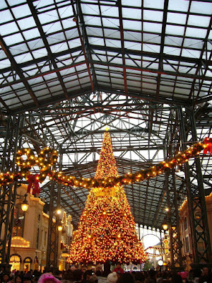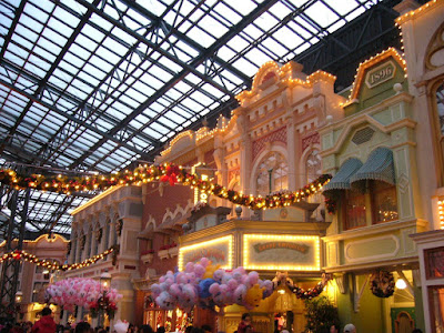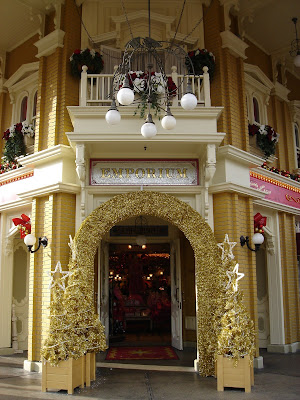 We will begin by pictures of the entrance and the World Bazaar - Tokyo Disneyland's Main Street - where are most of the Christmas decorations.