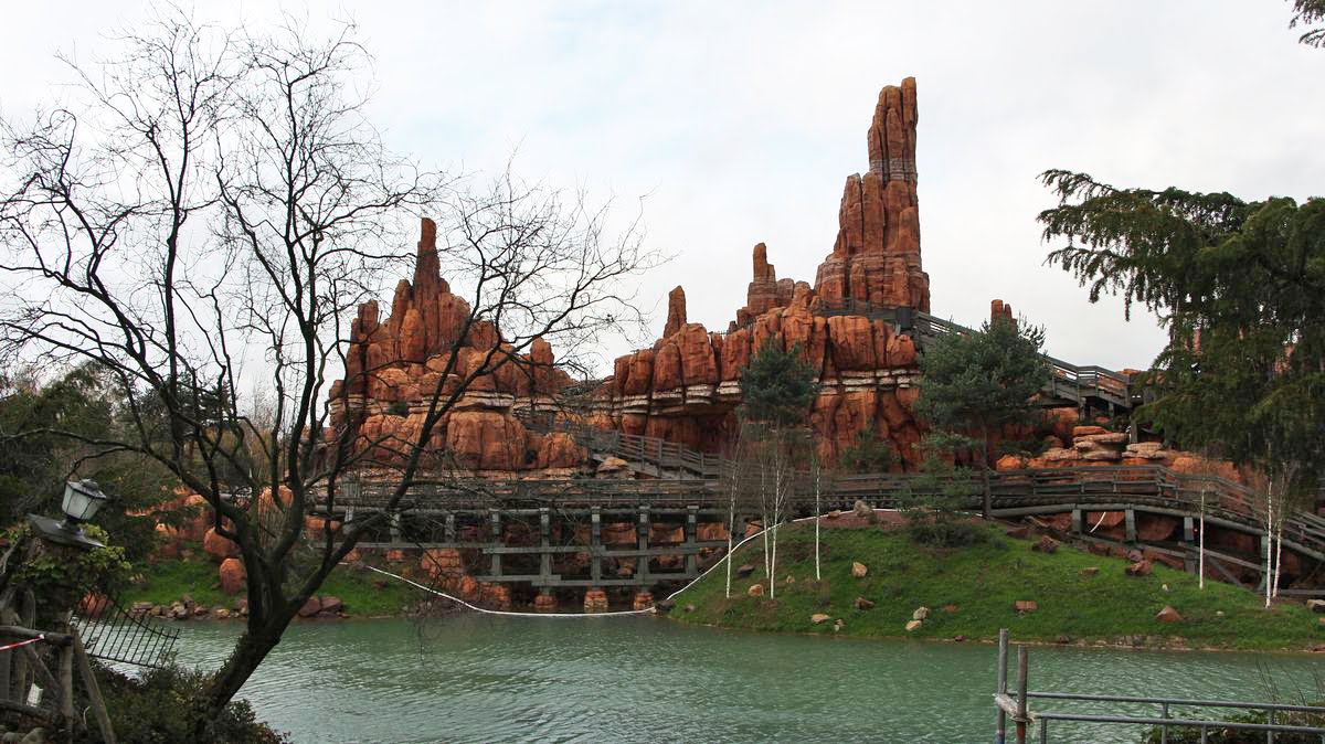 At Frontierland, the Lake is now filled. The tests continue on Big Thunder Mountain and the Geysers ( sound effects are noticeable in this part of the Park ).