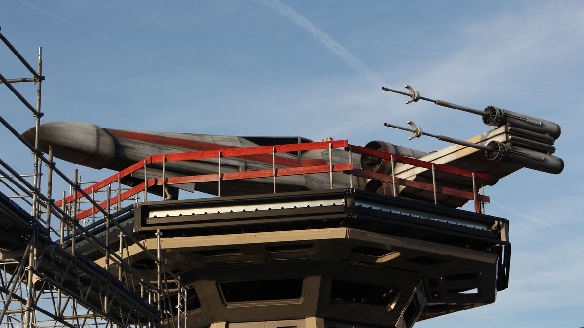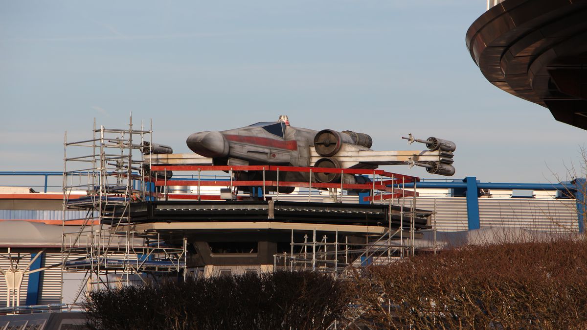 There is more with these pictures showing the works in Discoveryland on the Star Tours area now that the X-Wing fighter has been placed over the former Star Traders shop which will become a meet and greet with Star Wars characters when this part of the land will reopen next March.